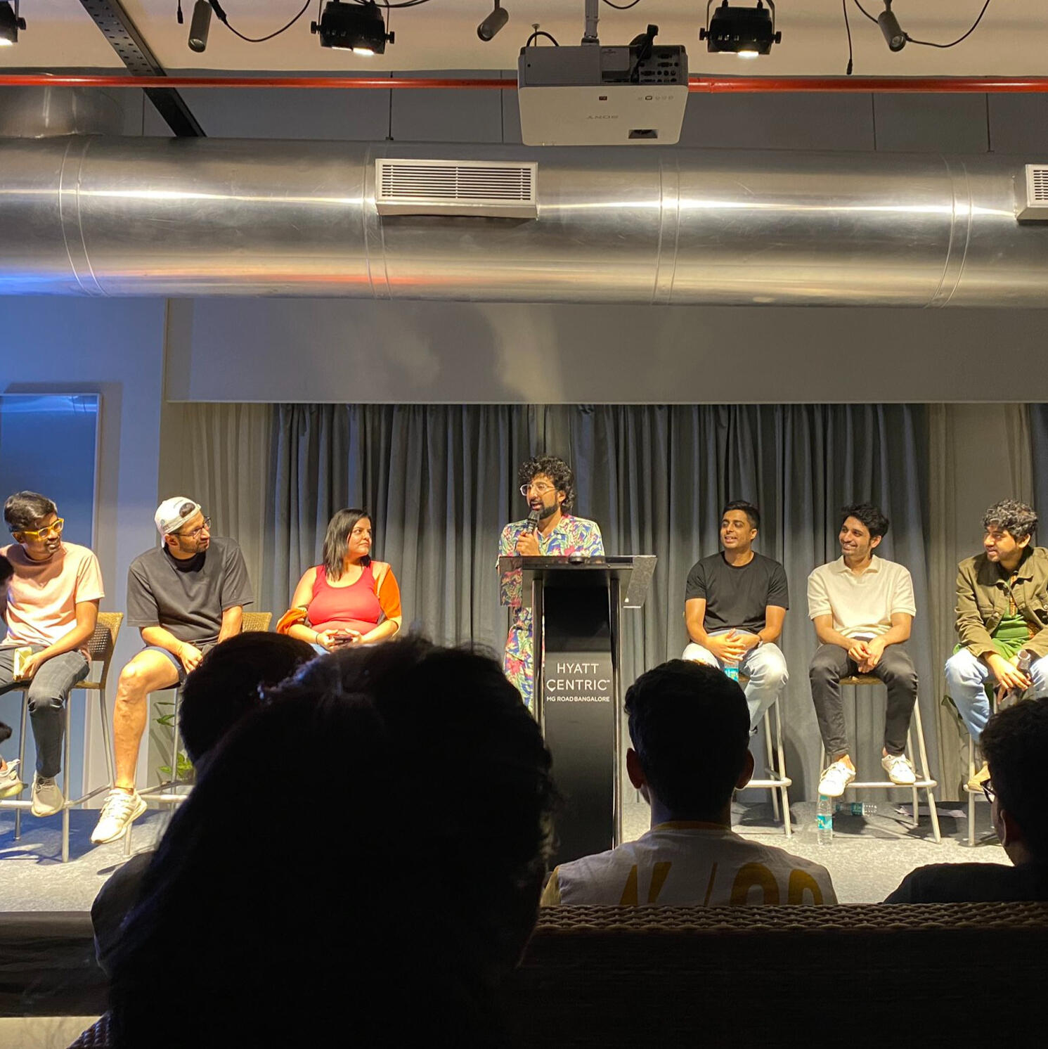 4th June 2023, Bangalore S2 Tech Roast India, Panelists included (L to R) Arnav Gupta(Director of Engineering), Varun Mayya(Founder/Youtuber), Adithya Venkatesan,(Head of Branding),Heer Shinghala, (Content Marketer), Maanav Saagar, (VC), Aditya Jain, (Community Manager)